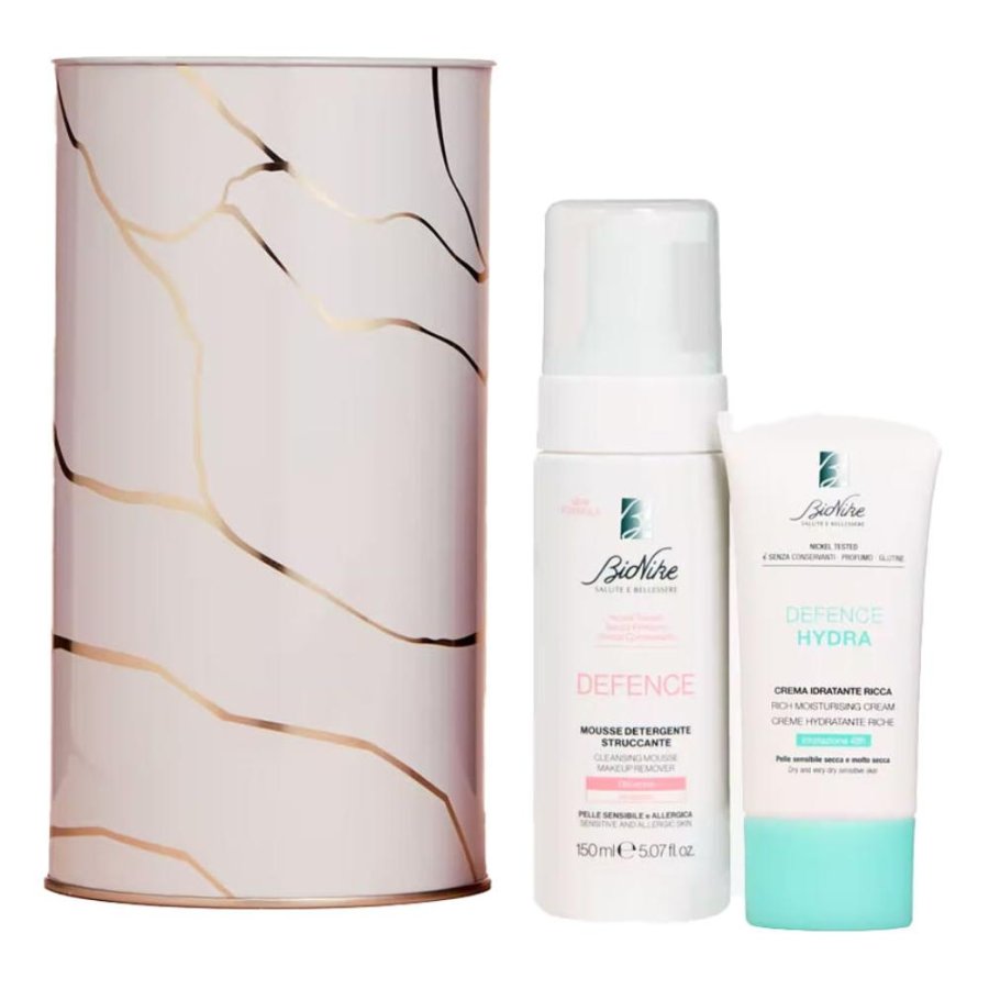 BioNike Beauty Essentials è un kit viso completo che combina la crema idratante ricca e la mousse detergente struccante per garantire una pelle detersa, nutrita e protetta ogni giorno. Formulato da BioNike, marchio leader nella cosmesi dermatologica, questo duo è ideale per pelli sensibili e secche. La mousse rimuove delicatamente trucco e impurità, mentre la crema idratante nutre in profondità, restituendo morbidezza e comfort. Perfetto per chi cerca una skincare essenziale ma efficace da usare mattina e sera.