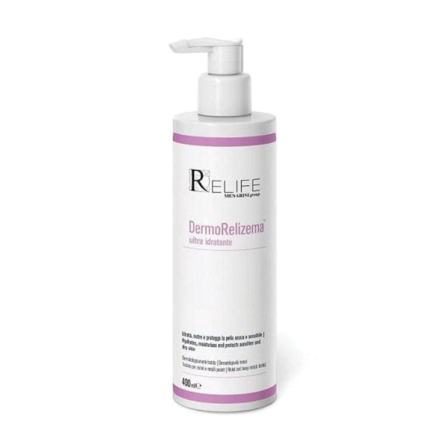 Detergere la pelle con DermoRelizema olio detergente idratante o DermoRelizema detergente liporestitutivo, prima di utilizzare DermoRelizema ultra idratante. Premere una o due volte l'erogatore e applicare una piccola quantità di prodotto sulle mani, quindi massaggiare delicatamente sulla pelle fino al completo assorbimento.
